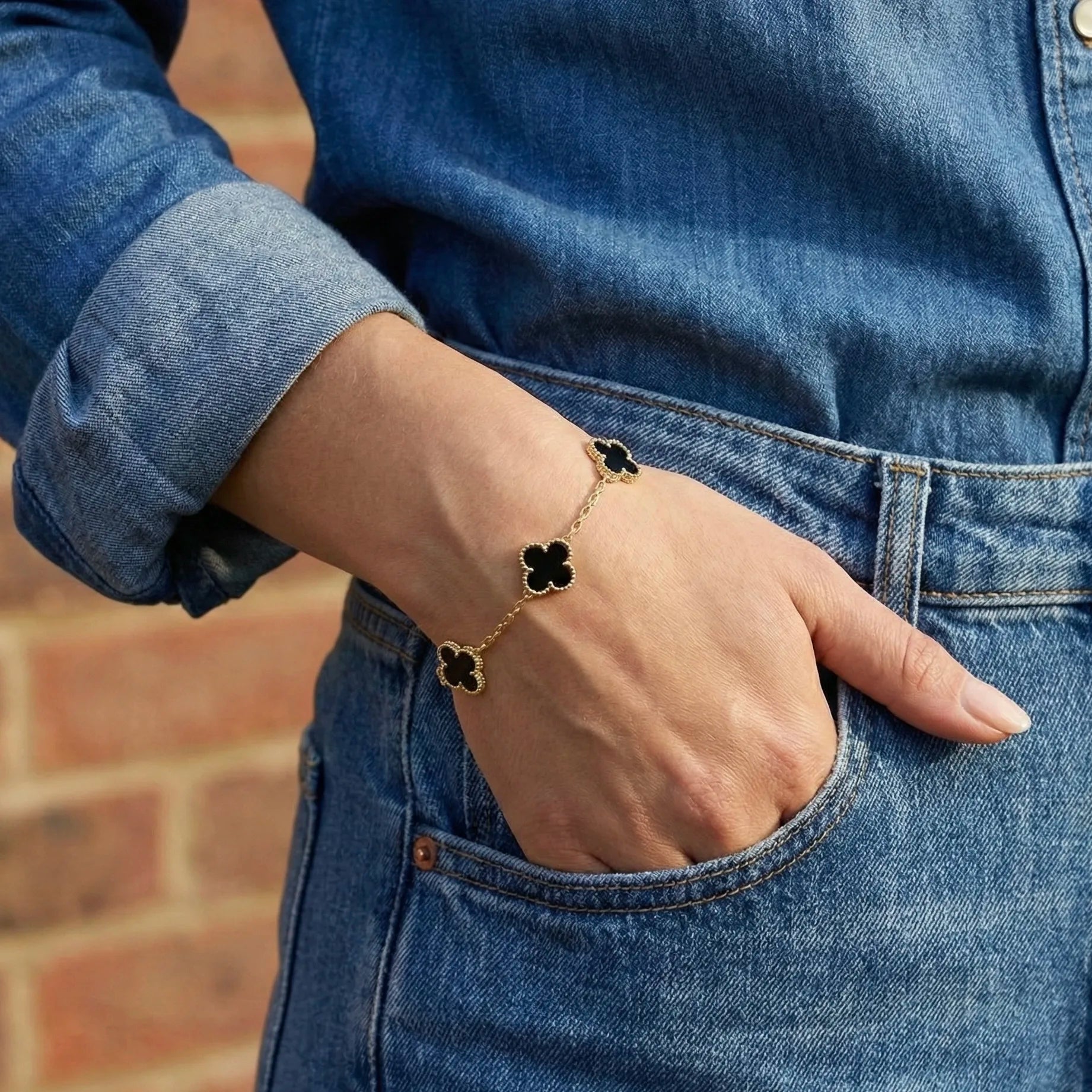The Elegance Clover Charm Bracelet brings a refined, modern touch to your everyday style. Designed with a sleek clover motif and a smooth polished finish, this bracelet is lightweight, skin-friendly, and anti-tarnish — making it perfect for both daily wear and special occasions. Its simple yet sophisticated charm elevates your wrist effortlessly.