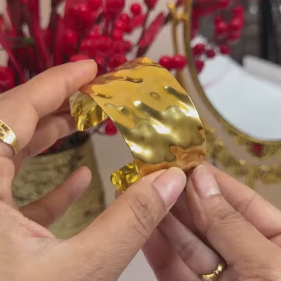 18KT Gold Plated Bold Hammered Bracelet Cuff