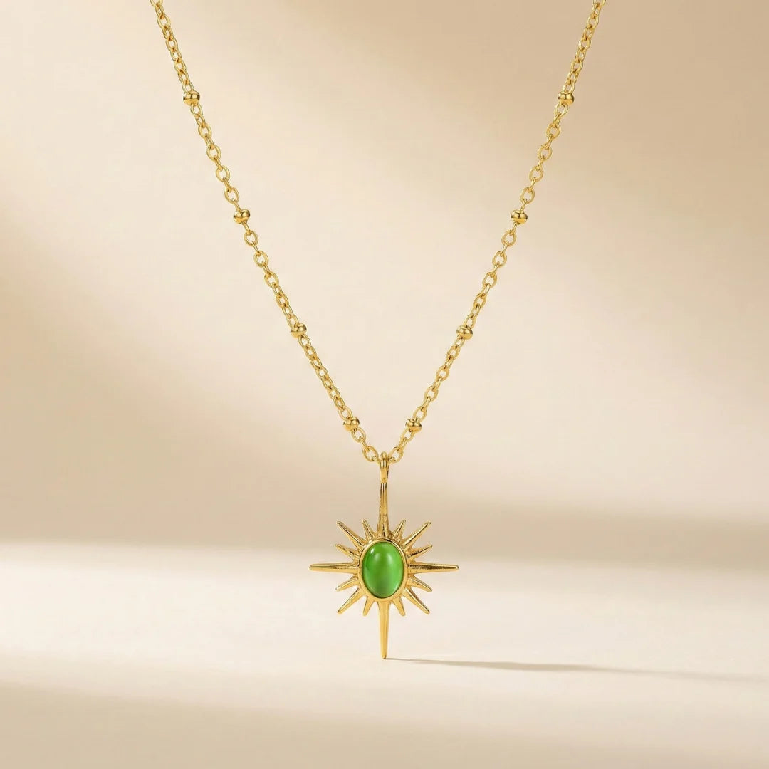 • Pair it with simple tops or dresses (white, pastels, neutral tones) to let the starburst pendant catch the light beautifully.