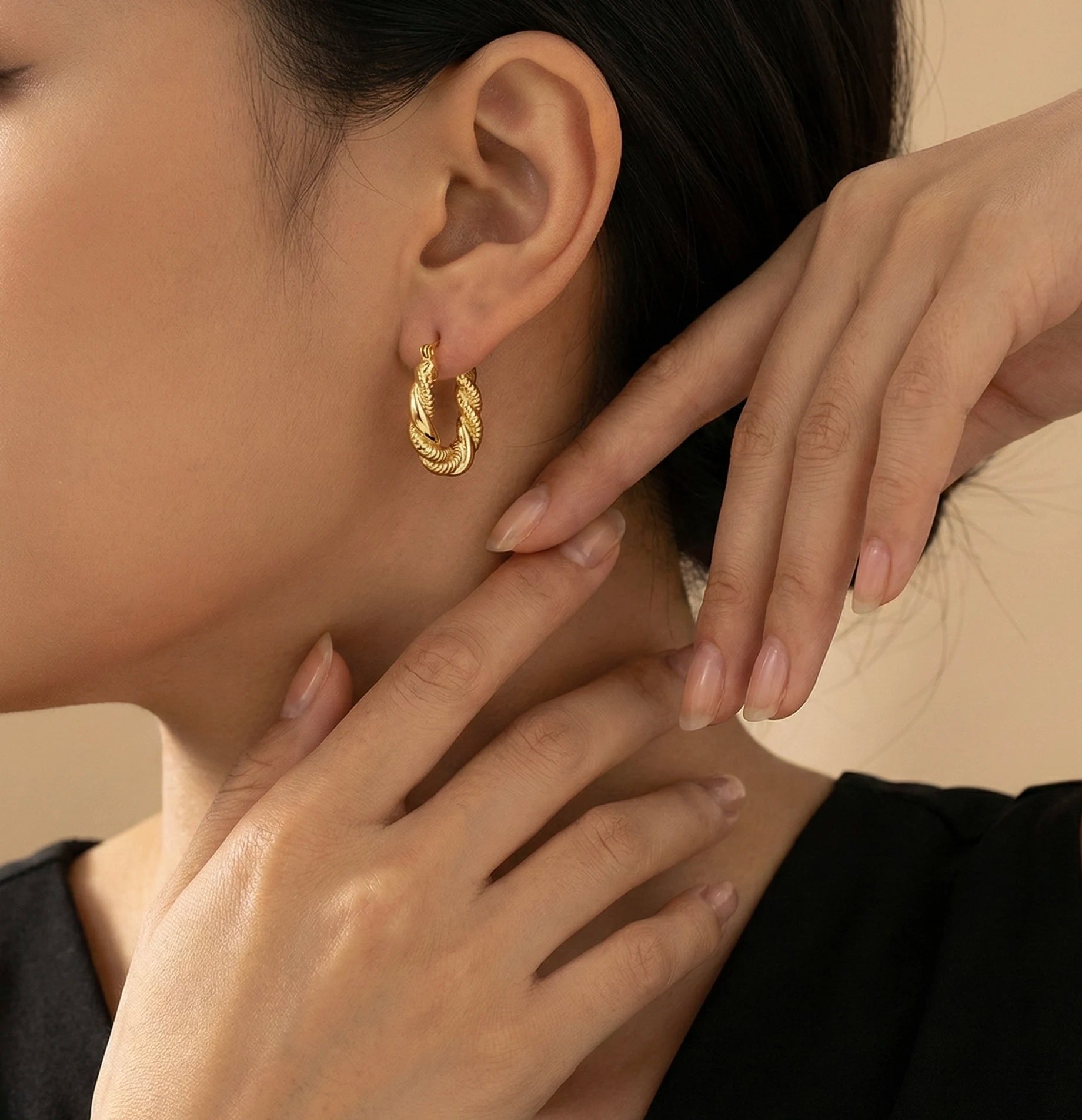 18KT Gold Plated Chunky Twist Hoop Earrings