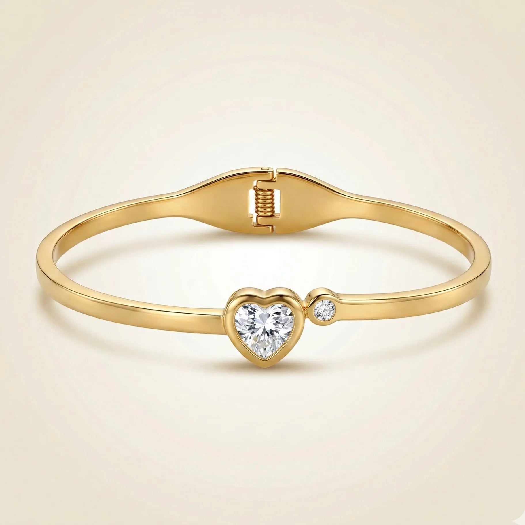 The Crystal Love Gold Bracelet features a radiant heart-shaped crystal set on a sleek gold-tone bracelet, giving your wrist a soft romantic sparkle. Lightweight, skin-friendly, and anti-tarnish, it’s perfect for daily wear or special occasions. The heart crystal adds an elegant shimmer, making this bracelet a sweet yet classy addition to any jewellery collection.