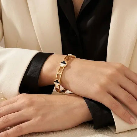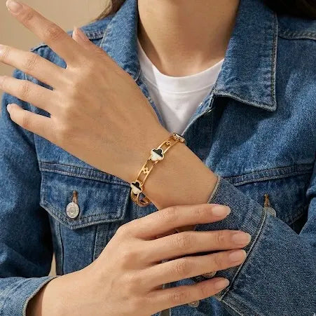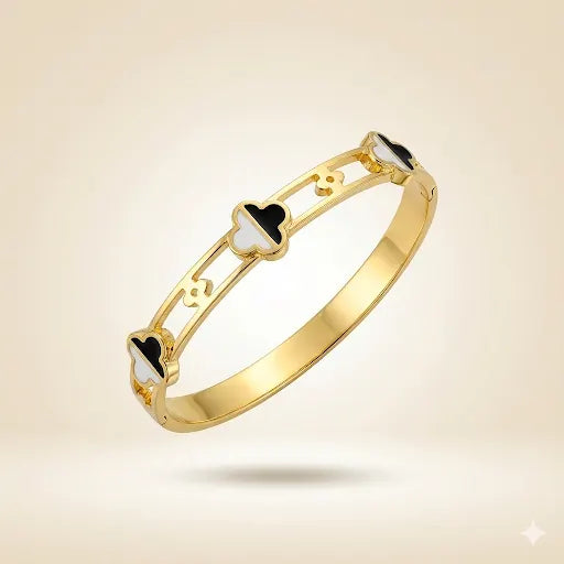 The Dual Tone Clover Charm Cuff blends elegance with a touch of luck. Designed with a two-tone clover motif and a sleek open-cuff style, it’s lightweight, skin-friendly and anti-tarnish — perfect for daily wear. The contrasting tones add a modern, stylish twist while keeping the piece minimal and classy.