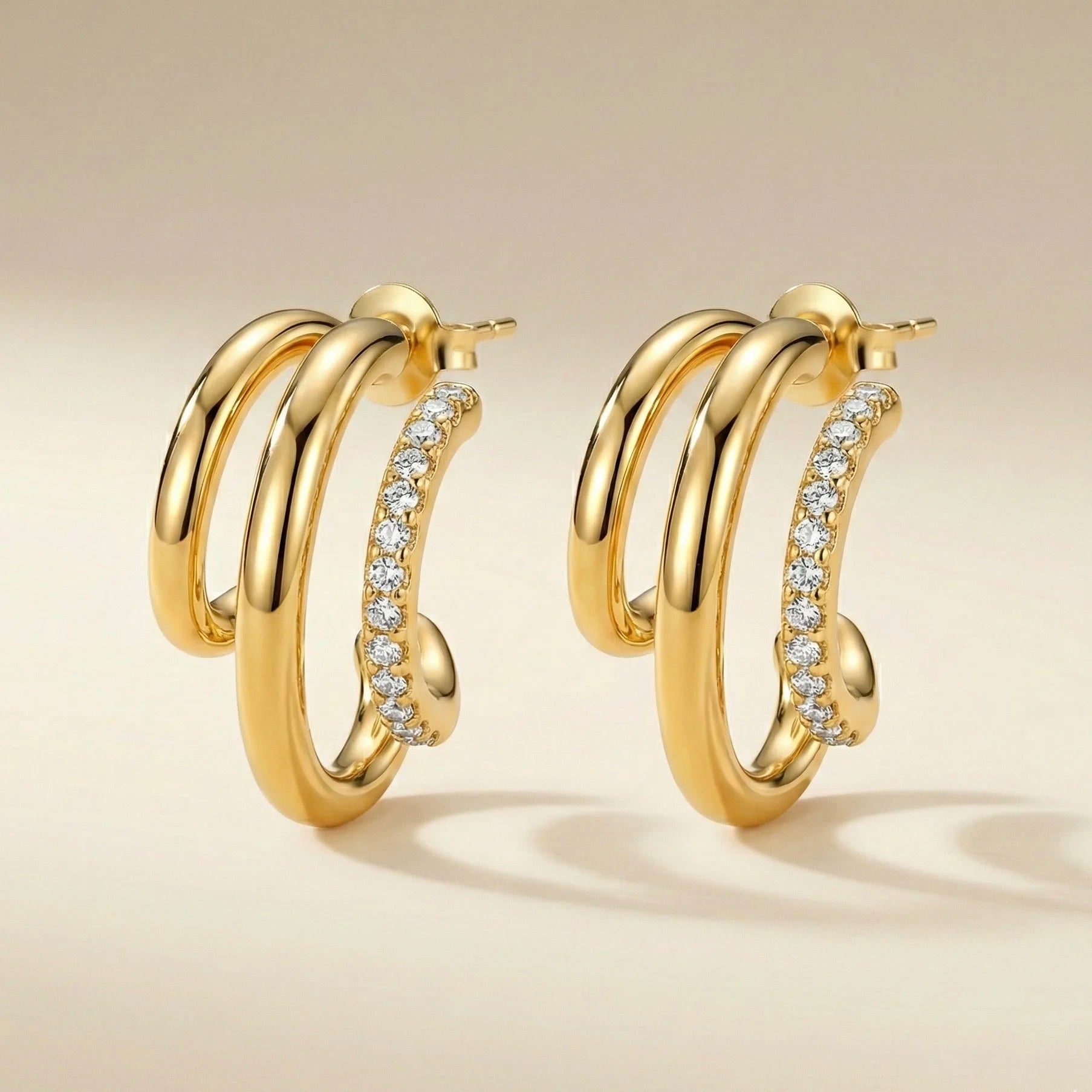 18KT Gold Plated Luxe Triple Hoop Sparkle Earrings