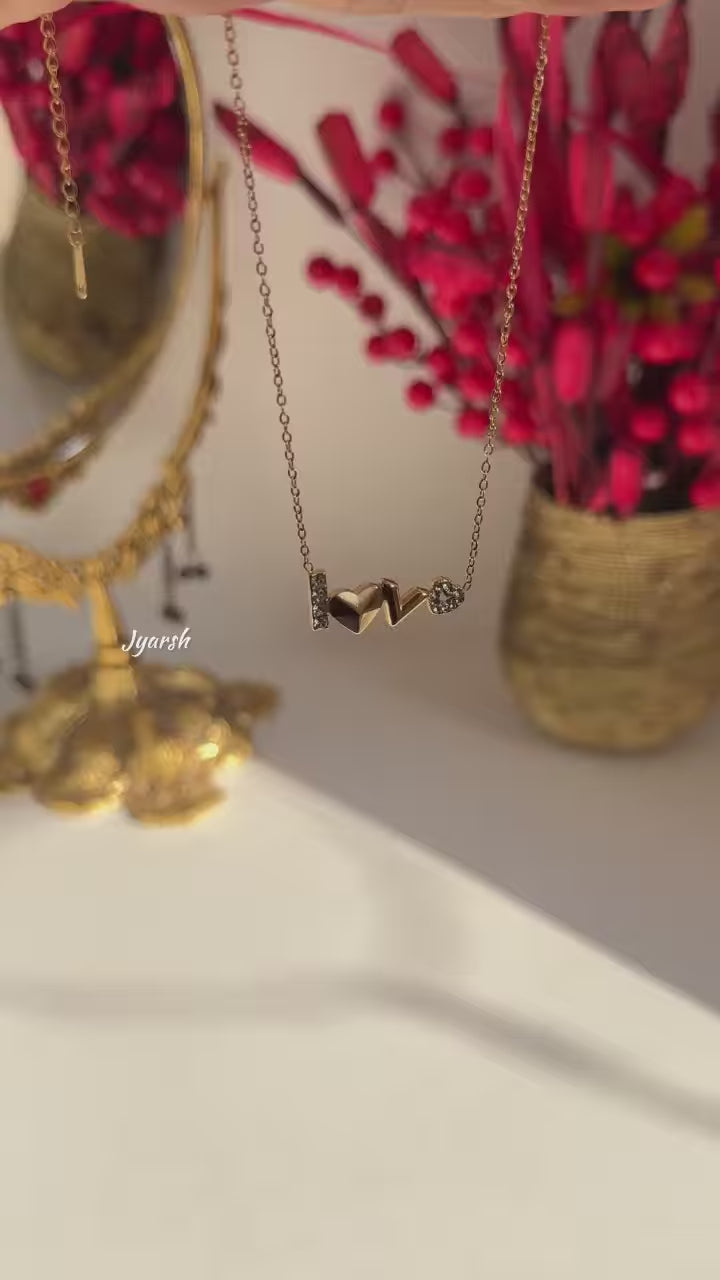 The Mini Love Statement Necklace brings a cute, subtle expression of love to your everyday style. With a dainty love-themed pendant on a fine 18 K gold-tone plated stainless-steel chain, it’s light, anti-tarnish, and skin-friendly — ideal for daily wear or casual outings. Its simple charm adds a gentle, heartfelt detail that complements both simple and chic outfits.
