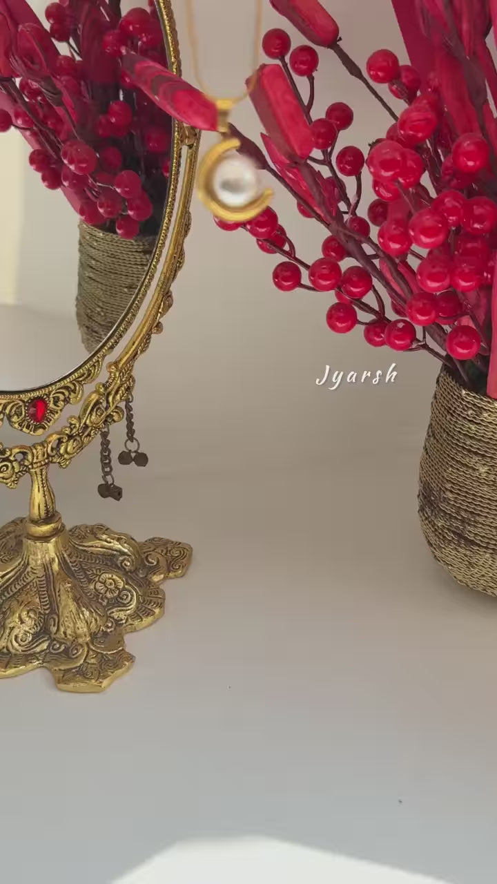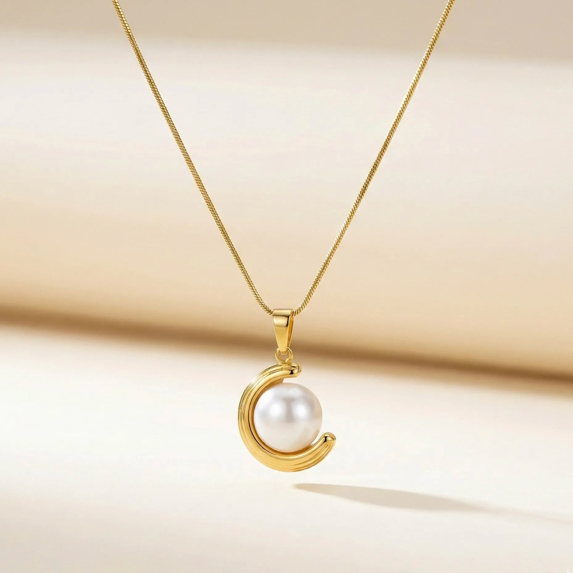 The Moonlit Pearl Glow Pendant features a stunning crescent-moon design gently holding a luminous pearl, crafted in skin-friendly, lightweight and anti-tarnish metal plating. Its celestial elegance adds a dreamy yet refined touch, making it perfect for everyday wear or evening occasions where you want effortless sophistication and soft glow.