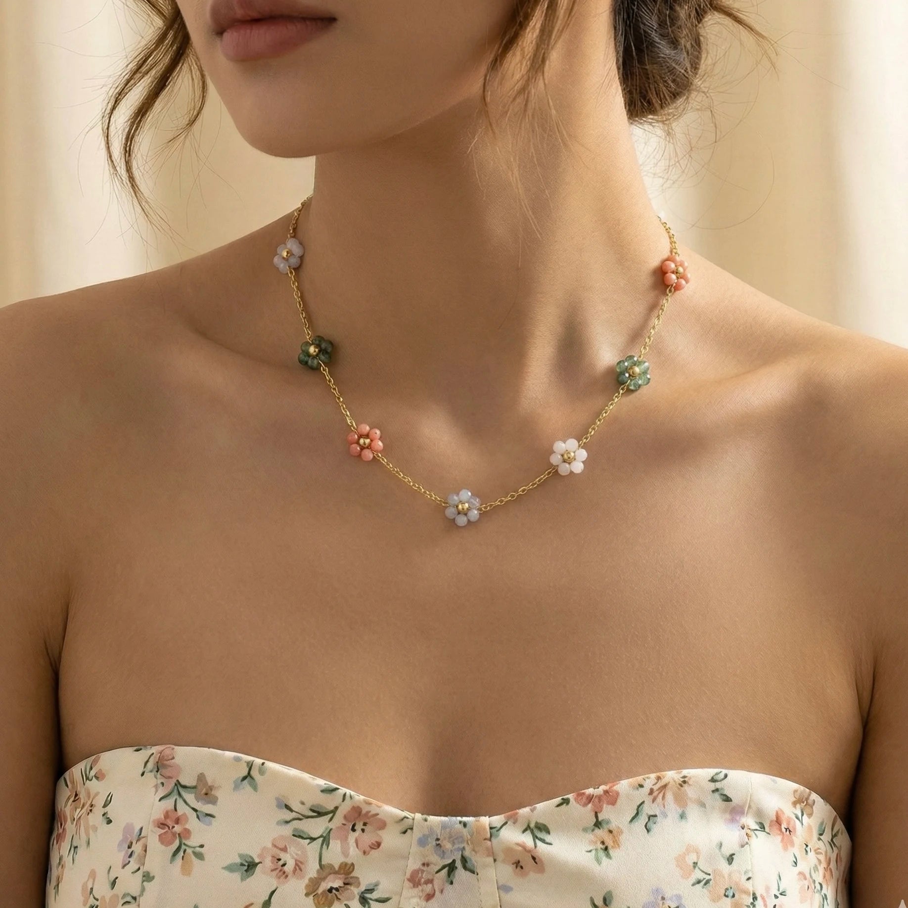The Rainbow Blossom Floral Chain features delicate multi-color floral charms placed along a fine gold-tone chain, creating a soft, joyful and lively vibe. Lightweight, skin-friendly, and anti-tarnish, this necklace adds a beautiful pop of colour and freshness to any outfit. Perfect for daily wear, summer looks or playful styling, it brings a bright and cheerful floral touch that feels effortless and stylish.