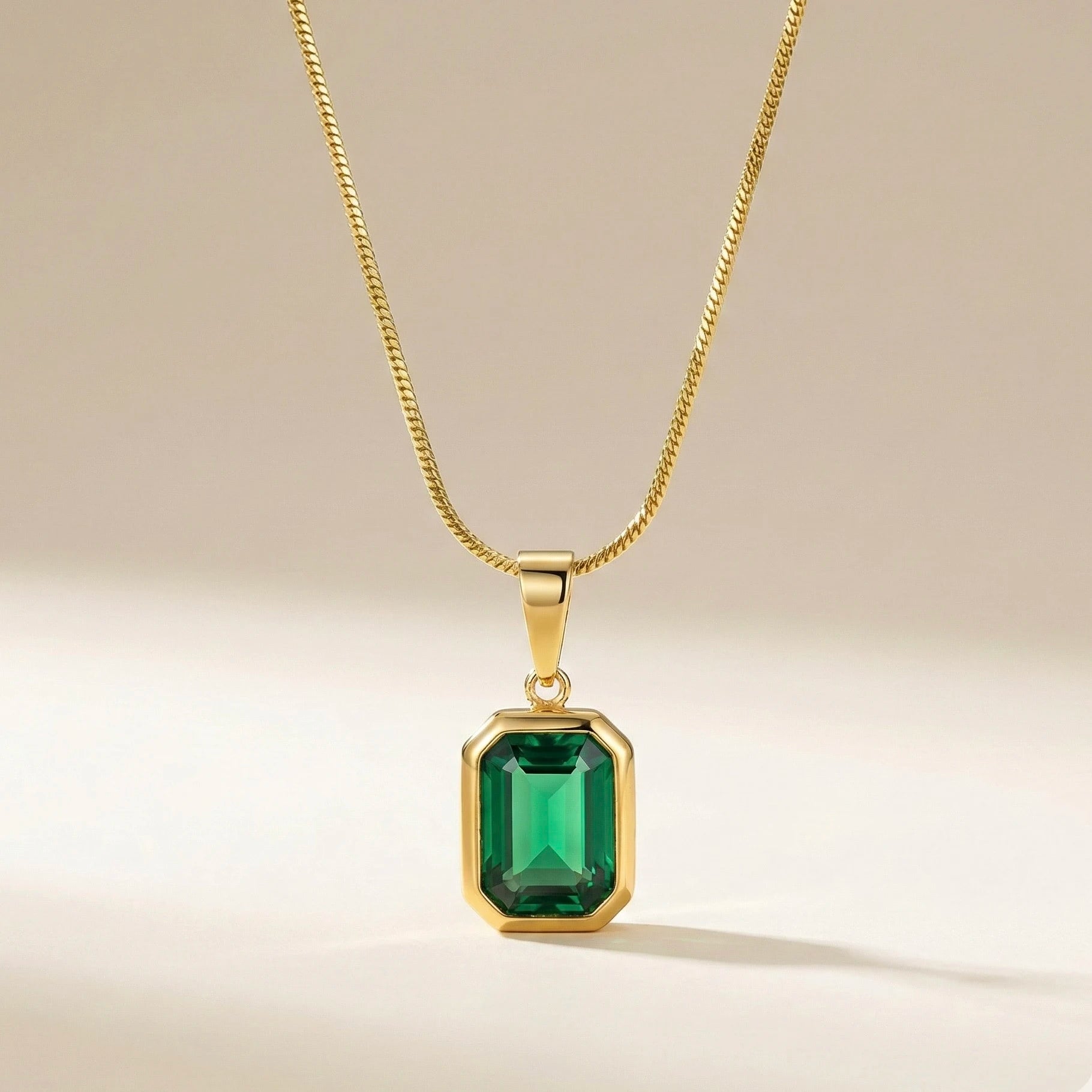 18KT Gold Plated Timeless Emerald Charm Necklace